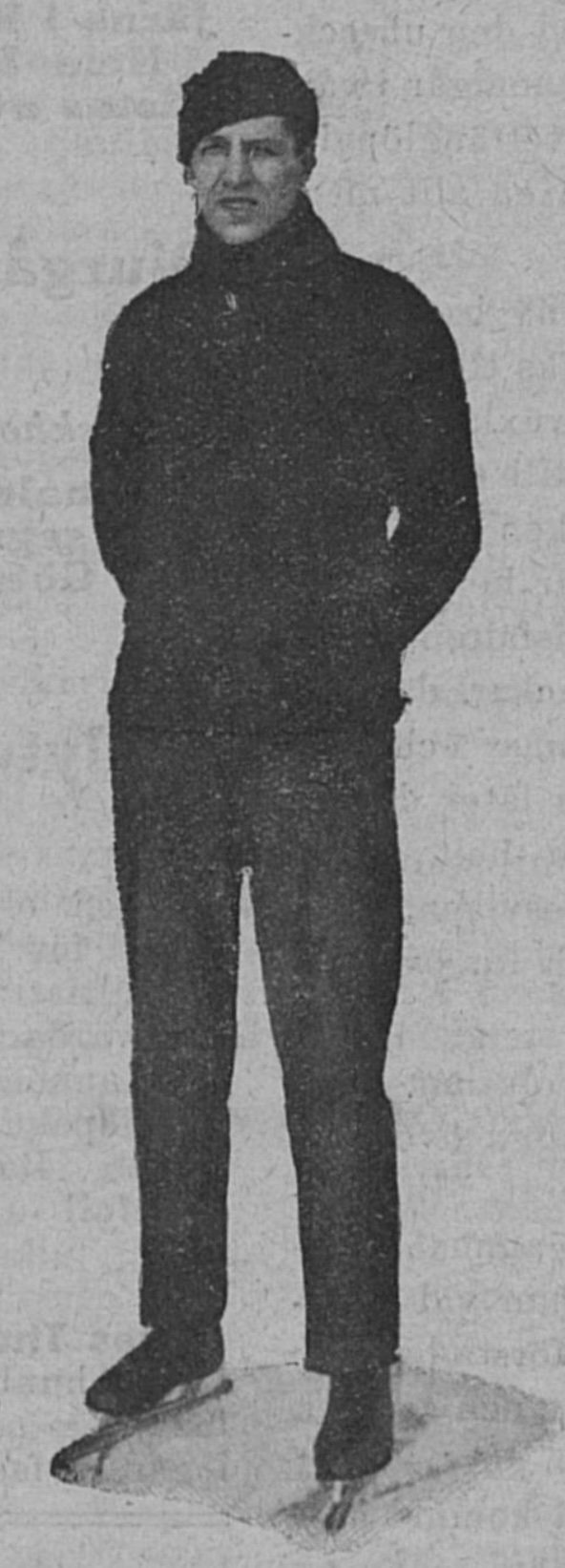 Oscar sjøl holdt oppvisning på Frogner søndag også. Han var ikke heldig med forholda, det var både blåst og snødrev og litt for kaldt, samme som dagen før da han gikk en engelsk mil på 2.34,5. Da var det bare 1000 tilskuere, men ryktene hadde spredd seg og søndag møtte det opp flere tusen. Først ville han gjøre verdensrekordforsøk på 500 m. Han løp det han kunne, og det var et herlig gjensyn for de tusener på tribunene, og han kom inn på 43,7, sesongbeste i verden. Det ville sikkert blitt rekord under bedre forhold. Tegningen er fra Morgenbladet.
